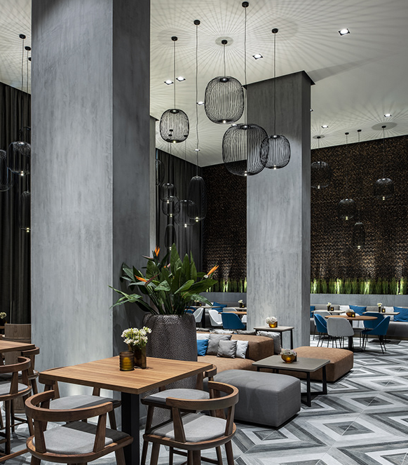阿爾巴沙萬怡酒店于2018年10月開業(yè),是阿拉伯聯(lián)合酋長國的一家酒店VI設計公司。酒店的內部裝飾深深植根于意大利風格,裝飾材料,高貴的木材,精美的大理石和精致的細節(jié)展現(xiàn)出嚴謹而現(xiàn)代的主題風格。全日制餐廳位于大廳旁邊,由金屬條而不是墻壁隔開,旨在鼓勵人們在兩個空間之間自由流動。繪制假天花板和地板的線也標記了這種流動。一樓還設有雪茄吧餐廳,不僅是用餐的地方,而且還得益于經過深思熟慮的布局,定制的家具和諸如混凝土,雪茄。臥室配有定制設計的家具,精致的細節(jié)和精致的裝飾讓您住得舒適。在屋頂樓層,客人可以享受水療護理,也可以參加設備齊全的健身中心。酒店以帶室外游泳池和豪華酒吧的屋頂為中心。酒店為客戶提供了在配備先進設備的會議室舉辦活動的可能性.