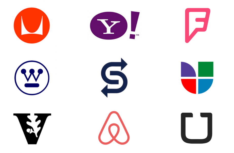 字體徽標(biāo)的示例包括:摩托羅拉、雅虎、FourSquare、西屋、SeaTrain Lines、Univision、范德比爾特大學(xué)、AirBnB 和 Uber。